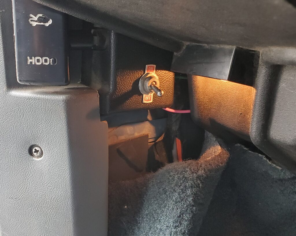 Ideal ! Because the fob has a “open trunk” button as well as the door locks. Perfect the Cavalier has a electric “pop the trunk” button… Right now the car has what’s left of a remote start system and I presume an alarm too. No fobs for that ! And that system will be wired into the door locking and the “flash the park lights” wires. I’ll be having fun with that..